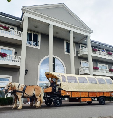 Unsere beiden Kremser sind überdacht, gefedert und gepolstert.